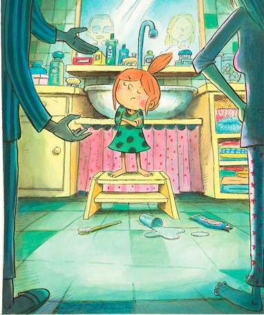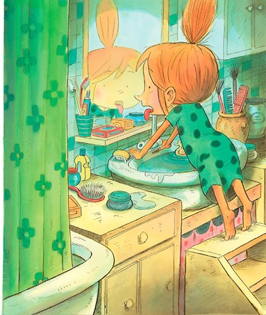"Không đâu mà! Tất cả những gì cậu cần chỉ là một trí tưởng tượng nho nhỏ để làm vài trò vui nhộn. Cậu có thể đánh răng dưới vòi hoa sen hoặc đánh răng mà đứng một chân. Cậu có thể vừa đánh răng vừa làm mặt hề, hoặc giả làm những quái vật mà cậu thích."