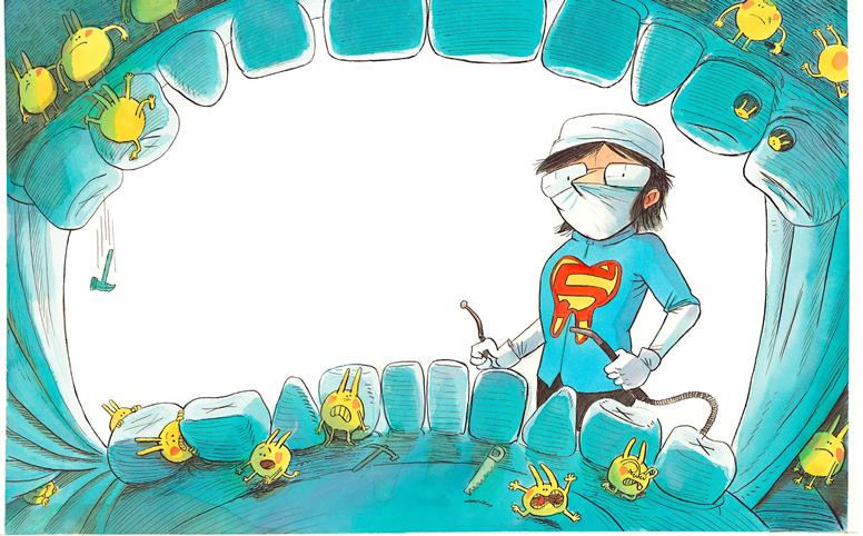 "Và nếu tất cả những việc đó vẫn không đủ, thì còn có một người có thể đánh bại quái vật Sâu Răng. Đó là nha sĩ!"